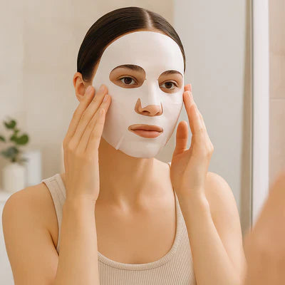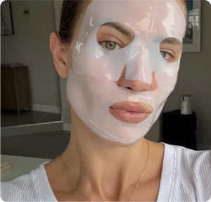 Relax for 30–60 minutes as the mask infuses your skin with collagen, peptides, and hydrating actives.